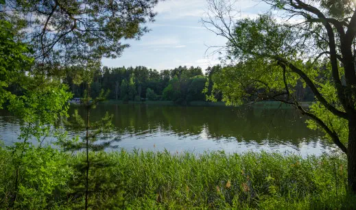 Место просто крутое: хвойный лес на берегу реки. Мы даже называем это «нашим море». Очень красивые участки, ухоженные, кругом один лес, чистый воздух. Летом постоянно здесь, катаемся на катере и на серфе!